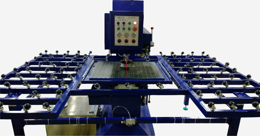 •2 Opposing drill heads which produce nice clean holes•Automatic and Manual operating modes•Pneumatic clamping to hold glass while drilling•Laser lights for hole centering•Oil dampening pistons for fine tuning the drill feed rate